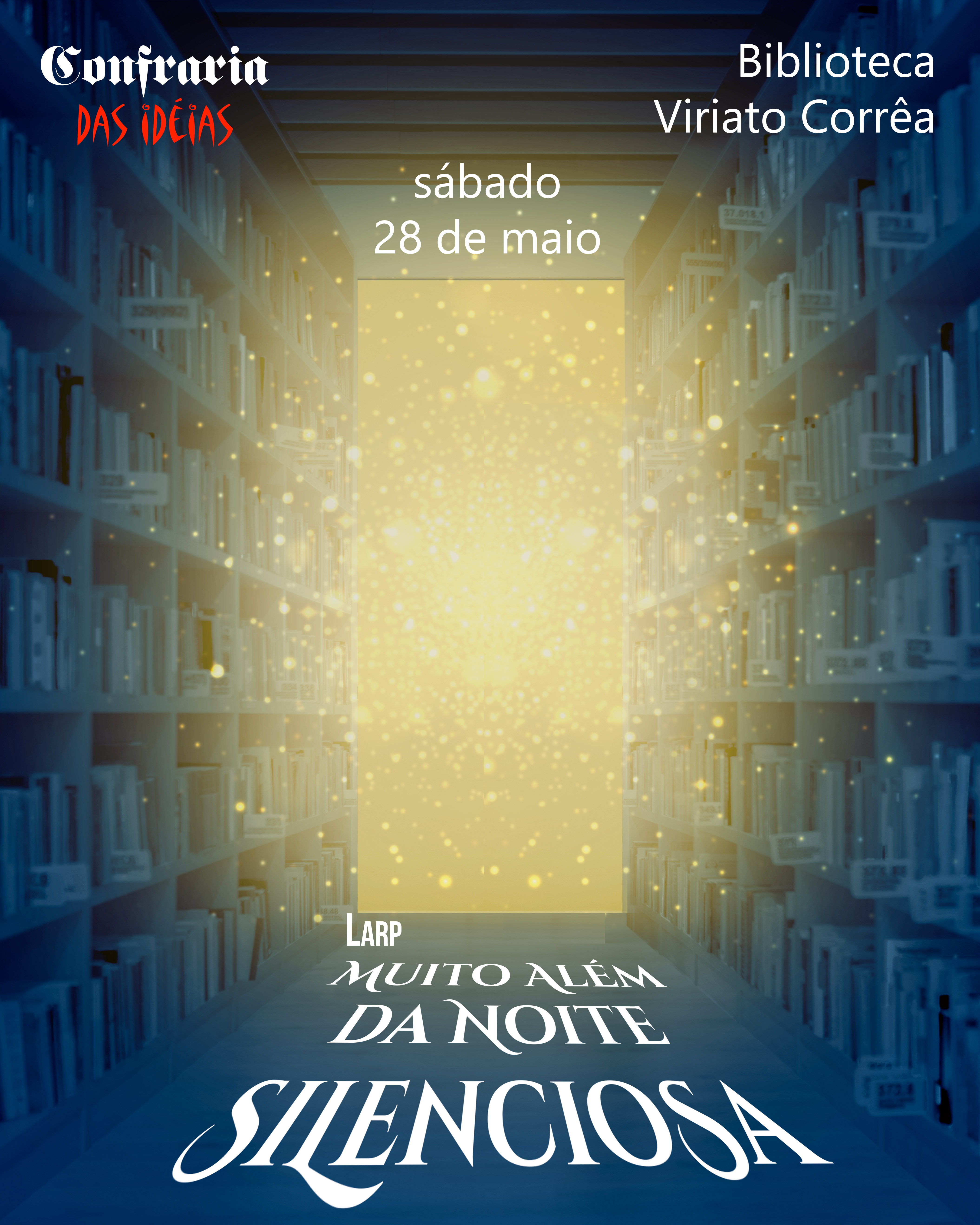 Muito além da noite silenciosa é um larp: um jogo em que você assume o papel de um personagem e vive histórias junto de outras pessoas. Em Muito além da noite silenciosa, você será um personagem vindo de um mundo fantástico em crise e que se vê rodeado de desconhecidos em um lugar mítico conhecido como A Biblioteca No Meio Do Caminho.